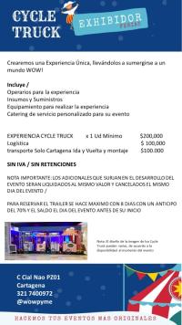 Valor y costos: Experiencia $ 200,000 / Logística $ 100,000 / Transporte solo Cartagena $200,000