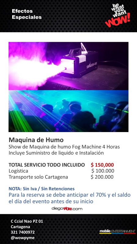 ¡Crea atmósferas envolventes y mágicas con nuestra cámara de humo! Perfecta para cualquier ocasión, desde fiestas hasta presentaciones en vivo, nuestra tecnología garantiza efectos visuales impresionantes y un ambiente lleno de emoción. deja que la neblina transforma tu evento en una experiencia inolvidable.