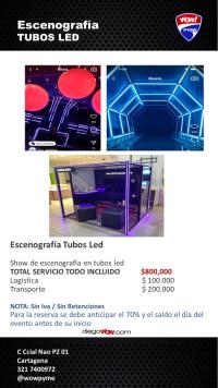 Valor y Costos: Escenografía Tubos Led $ 800.000 + Logística $ 100.000 + Transporte solo Cartagena $ 200.000