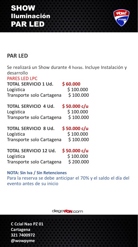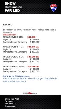 Valor unidad par led $ 60.000 + logistica $ 100.000 + transporte $ 200.000