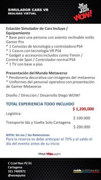 Valor y Costos: Experiencia $ 1.200,000 / Logística $ 100,000 / Transporte Ida y Vuelta solo Cartagena $ 200,000